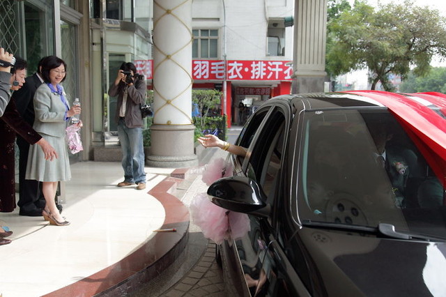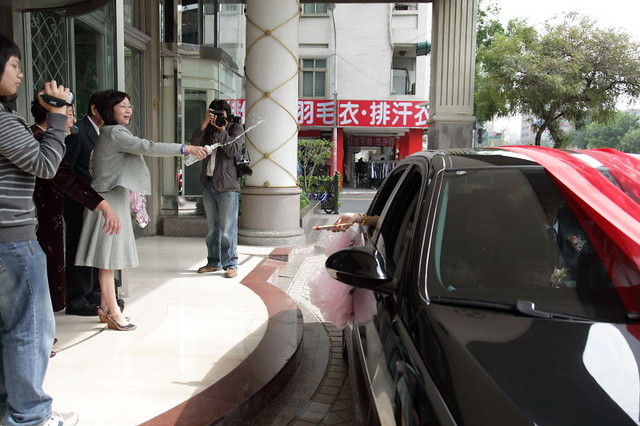 我家新郎倌要出發來接我摟!! 經過手機情報網...我的美麗伴娘老妹在門口等著要請姊夫咬橘子... 我的花童有很兩極化的反應... ....還有 Part 2
